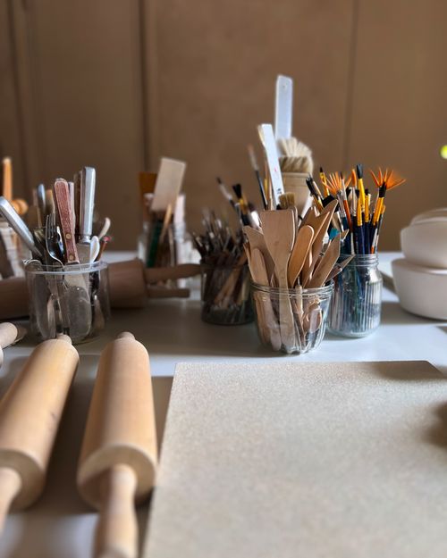 The membership includes: access to the studio during opening hours, a personal shelf for your clay works, basic glazes, and use of communal tools. Clay and additional glazes are available for purchase at the studio, and there is a small fee for firing services. Firing prices can be found under the "Studio" section.
